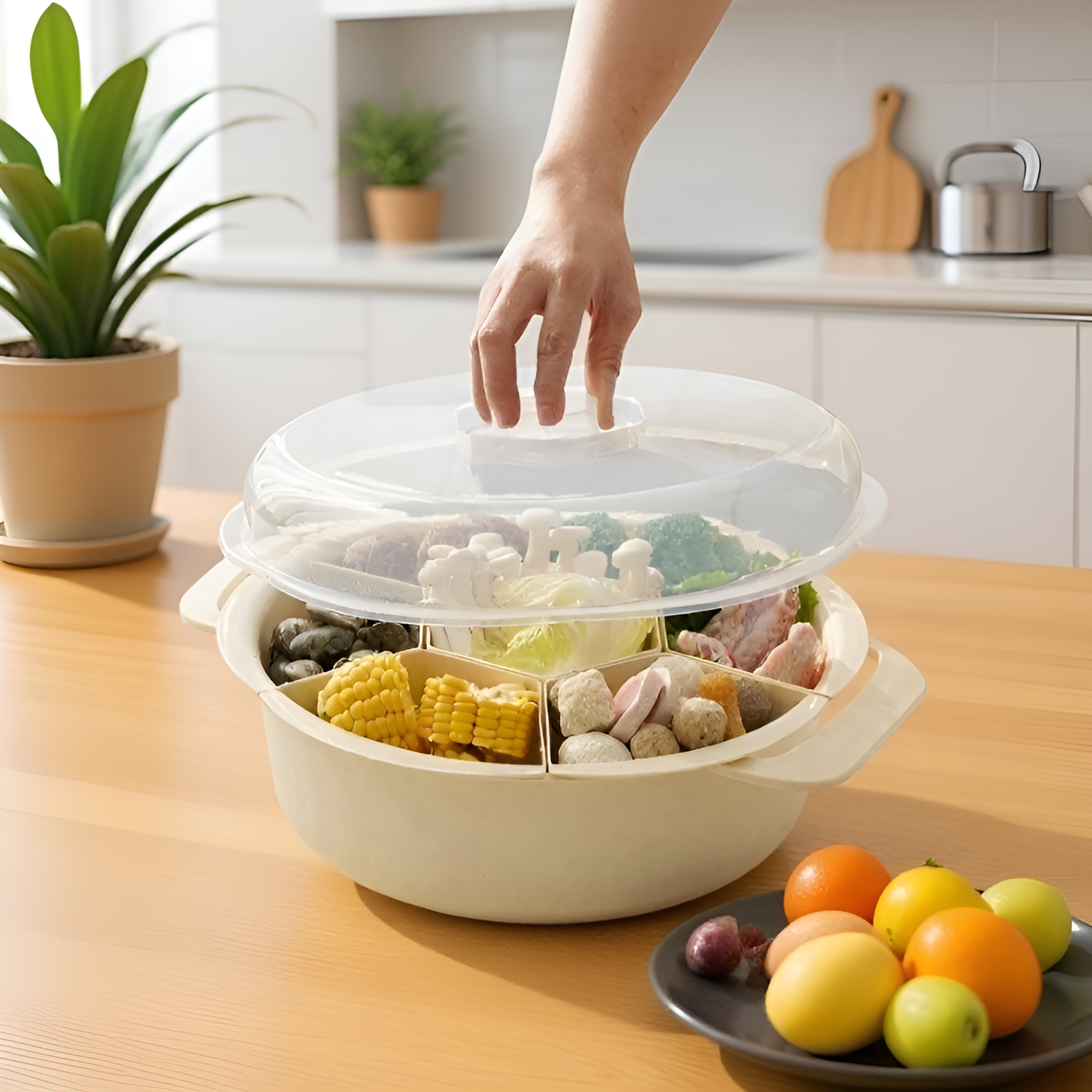 Konyhai stílusú, megosztott zöldségtál