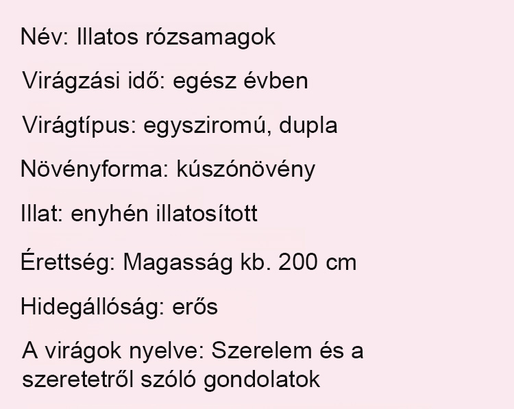 Több mint 300 napon át virágzik, Pár ágat vázába téve fél hónapig illatozik – a mindennapi fáradtságot is elűzi. 🌸